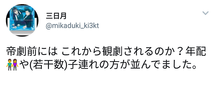 帝劇前には これから観劇されるのか?年配👫や(若干数)子連れの方が並んでました。 https://t.co/OudXxJ4BmA