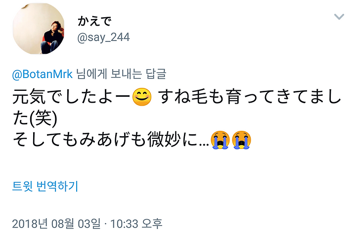 쯔요시군 겡끼했어요-😊 다리털도 자랐어요ㅎㅎ 그리고 구레나룻도 미묘하게…😭😭