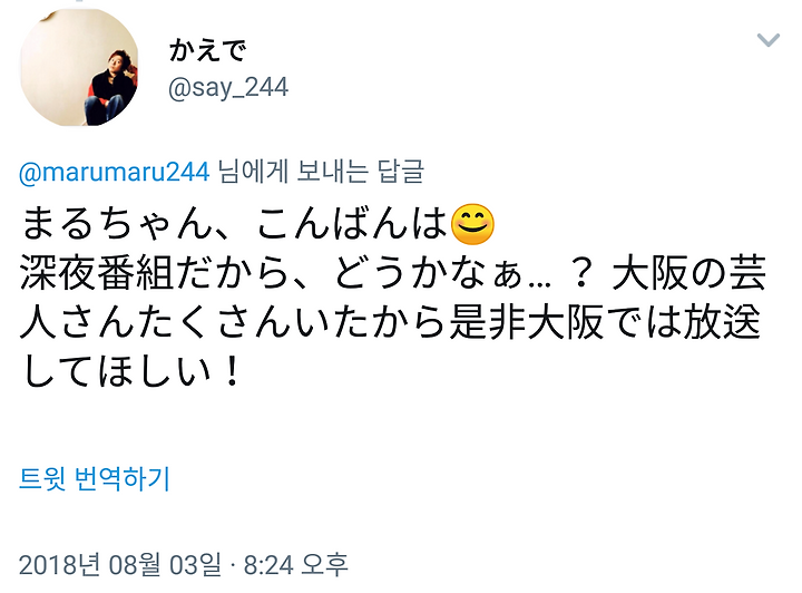 심야 방송이니까 어떨까나..?오사카의 게닌 많이 있었으니까 꼭 오사카에서는 방송했으면 좋겠어!
