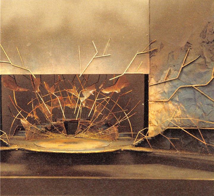 구체적인 아이디어로서는 이 작품에는 몇 번이나 나오는 새의 이야기로부터 "둥지"를 착상했습니다. 둥지 같은 요람 같은 장소가 중심이고, 거기서부터 생명의 나무, 뿌리와 땅과의 관계 사람와 사람의 이어짐, 혈관 등을 이미지한 나뭇가지 형상의 미술이 뻗어져 있습니다. 바닥에 숨겨진 파열이 마치 화산에서 용암이 흐르는 것처럼 빛나는 것도 있습니다. 자주 절 등에서 신을 위해서 계속 켜놓는 불이 있지요. 저것과 같아서 모든 에너지는 중심에서 밖으로 뻗어져 나가는 것입니다.