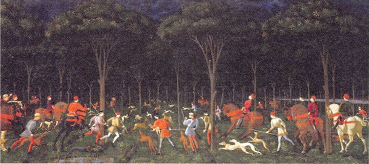 그리고, 중세의 화가 파올로 우첼로의 그림「숲 속의 사냥」으로부터 크게 영감을 받았습니다. 중세 그림인데 매우 심플하고 현대적이어서 『나이츠 테일』에서도 새로운 것과 오래된 것, 가벼운 것과 무거운 것 등을 독특한 비율로 조합했습니다. 제게 있어서 무대는 일상의 복제가 아닌 생각을 전하기 위한 것. 그것을 위해 중요한 것이 비율인 것입니다. 일본에 와서 흥미로웠던 것이 바닥도, 벽도 매트도 전혀 다른 비율로 보였던 것. 영국보다 작은 체구의 분이 많다는 것과, 질감이 영국과는 다른 것이 이유라고 생각합니다. 이번의 미술도 영국이라면 좀 더 크게 디자인 했을 것을 사람이 더욱 가깝고 크게 느껴지도록 각도를 묘하게 고안하는 등 작은 트릭을 이쿠츠모 몇 개나 장치해 깊이 생각한 비율, 밸런스를 실현시키고 있습니다.