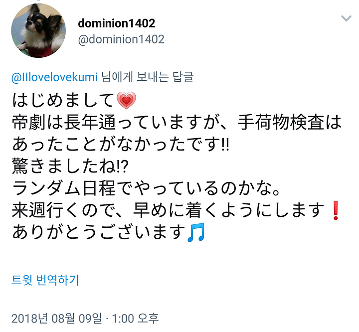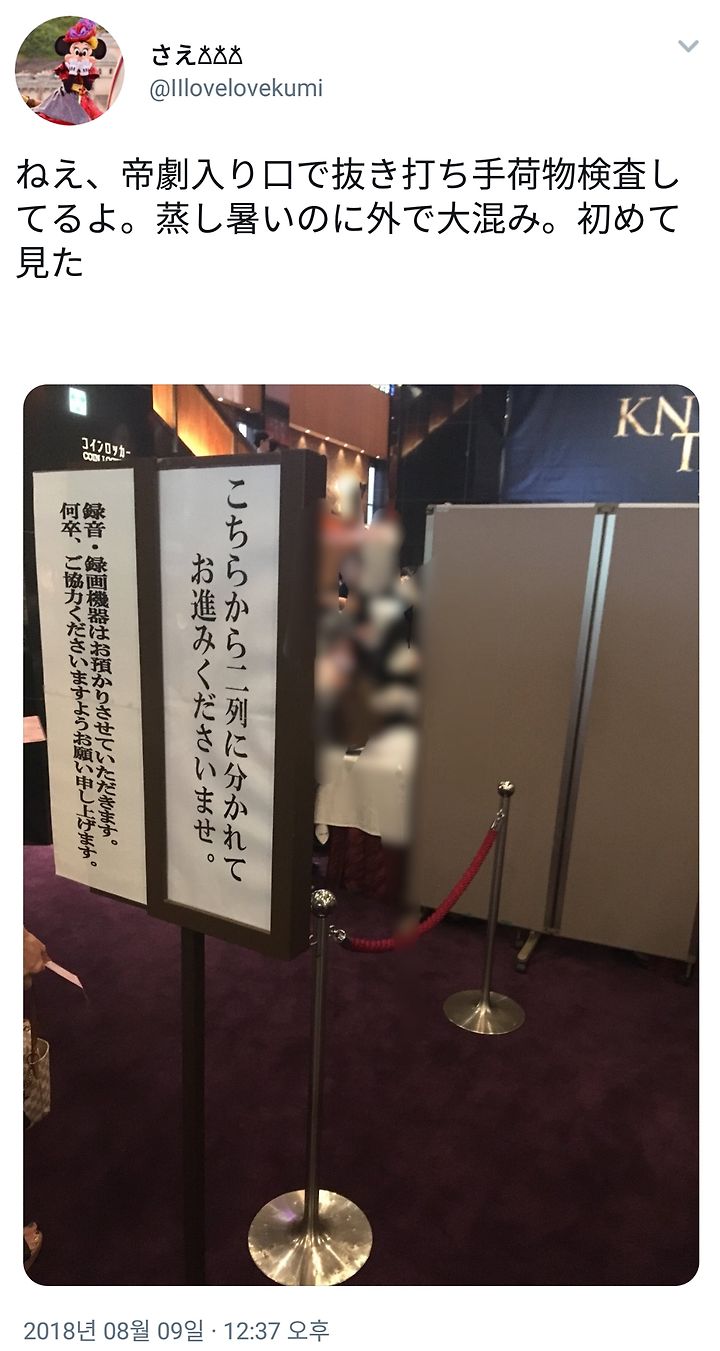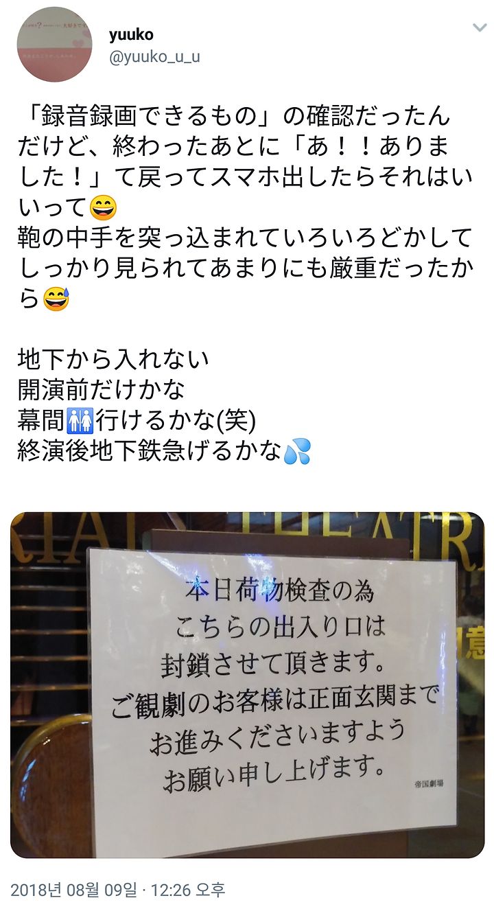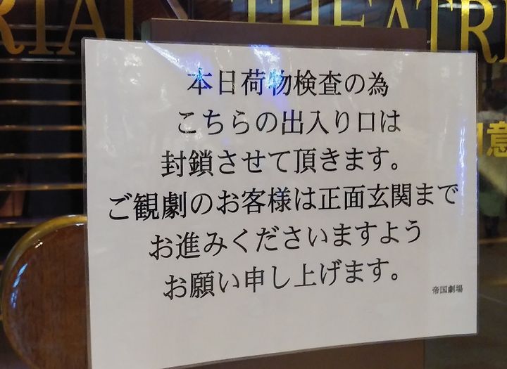 帝劇は長年通っていますが、手荷物検査はあったことがなかったです‼