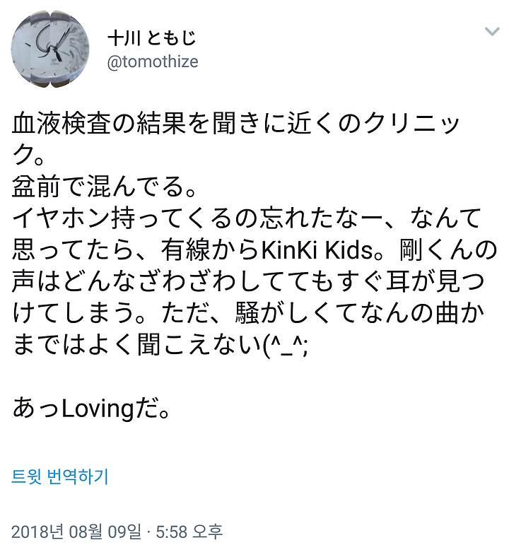 이어폰 가져오는 것 까먹었네..라고 생각하고 있었는데 유선방송에서 KinKi Kids. 쯔요시군의 목소리는 아무리 시끌벅적해도 바로 귀가 발견해버린다. 다만 소란스러워서 무슨 곡인지는 잘 안 들린(^_^;