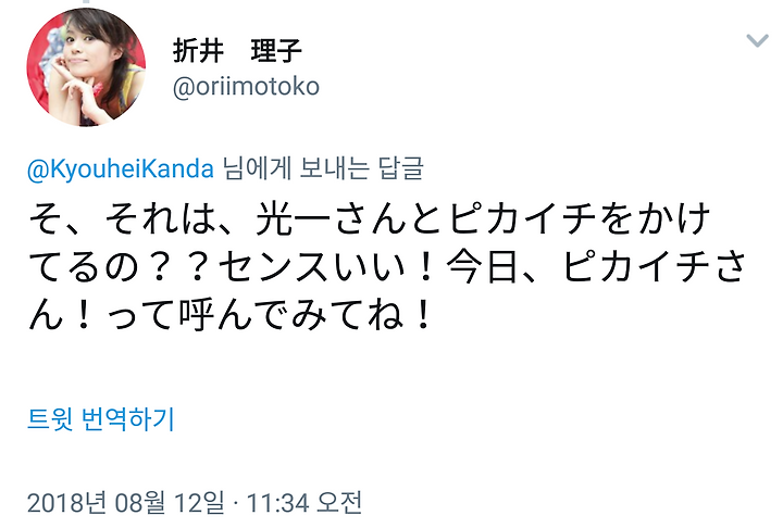 그, 그건 코이치상과 피카이치를 연관 지은거? 센스 좋네! 오늘 피카이치상! 이라고 불러봐!