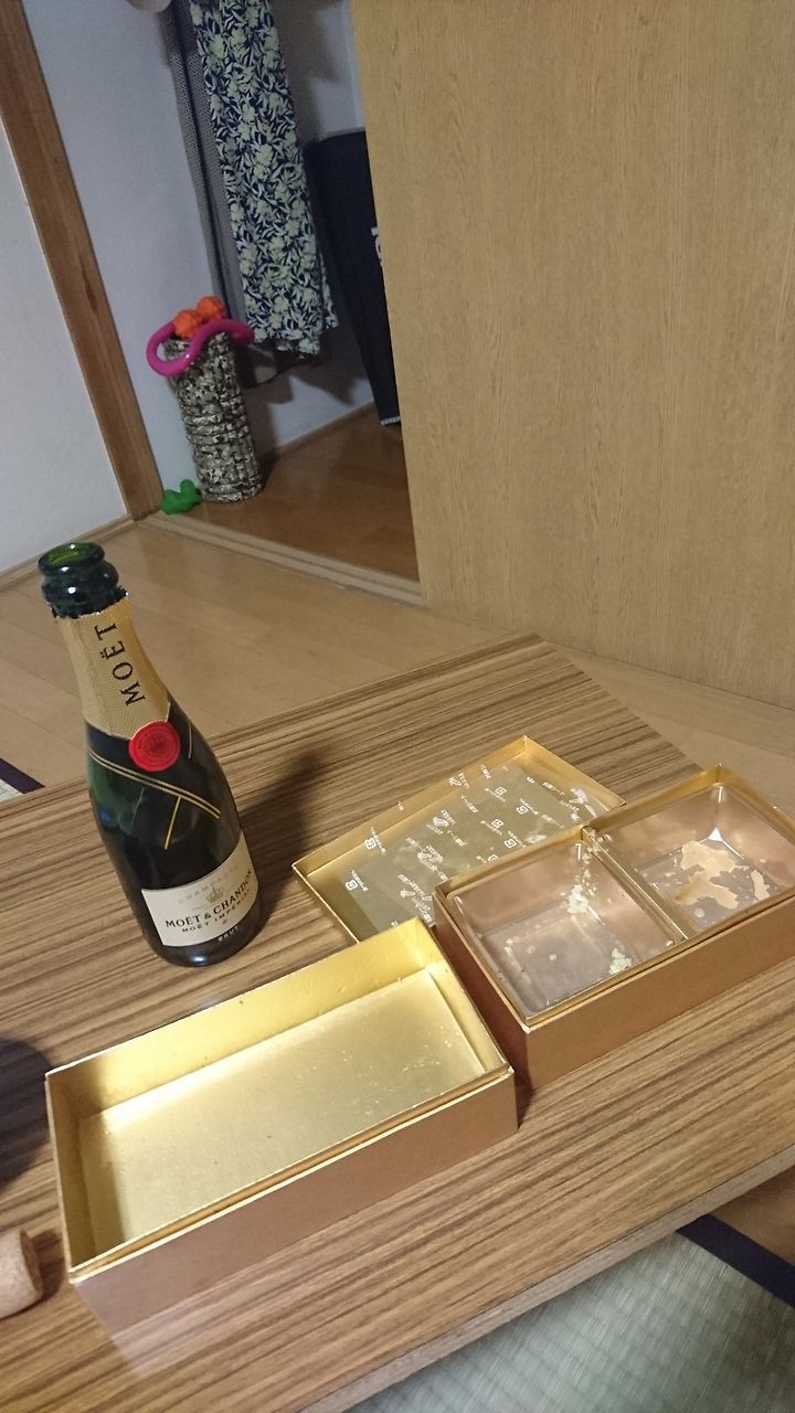 緊張が一気に解消されたので、いただいたシャンパンと、頂いたお弁当で、ひとり打ち上げしとる。