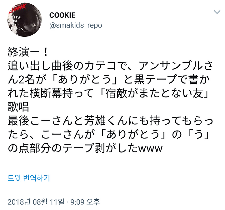 마지막 코이치상과 요시오군도 들도록 했더니 코이치상이 "아리가토우"의 "우" 의 점 부분의 테이프 떼어 낸 www