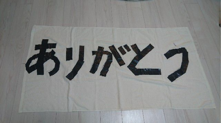 最後の最後、歌い手さんが白バスタオルに黒ガムテープで「ありがとう」の文字!!