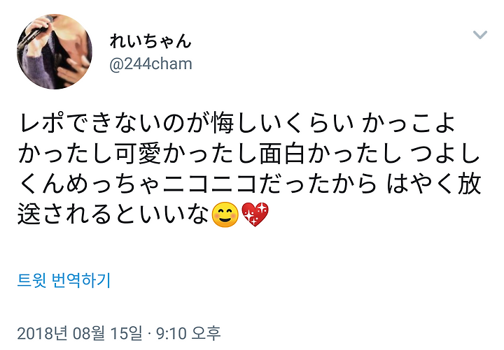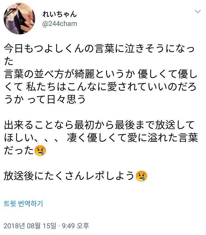 레포 불가한게 억울할 정도로 멋있었고 귀여웠고 재밌었다 쯔요시군 엄청 방긋방긋이었으니까 빨리 방송 되면 좋겠네