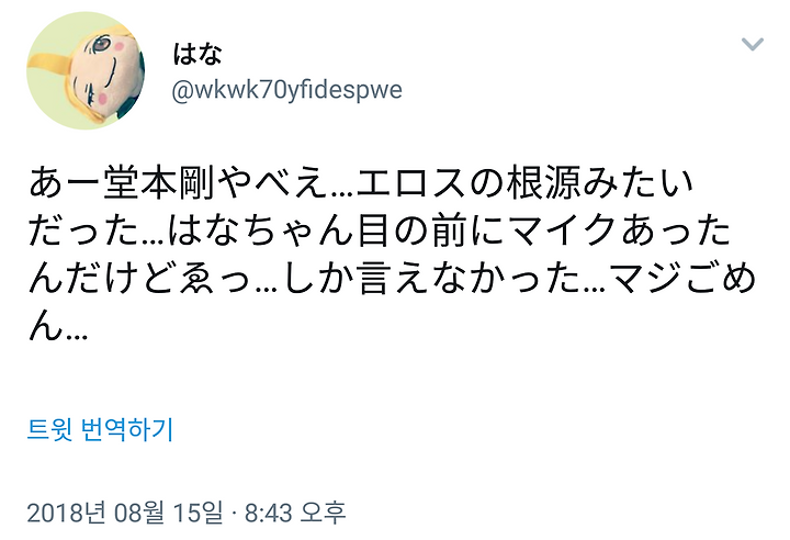 아 도모토 쯔요시 장난없어 에로스의 근원같았다. 하나짱 눈 앞에 마이크 있었는데 ... 밖에 말할 수 없었다 진심 미암
