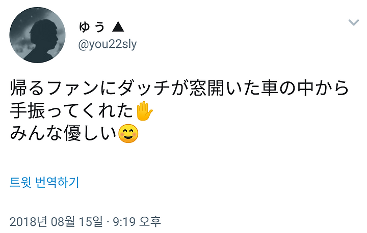 돌아가는 팬에게 DUTTCH 가 창문 열린 차안에서 손 흔들어 주었다