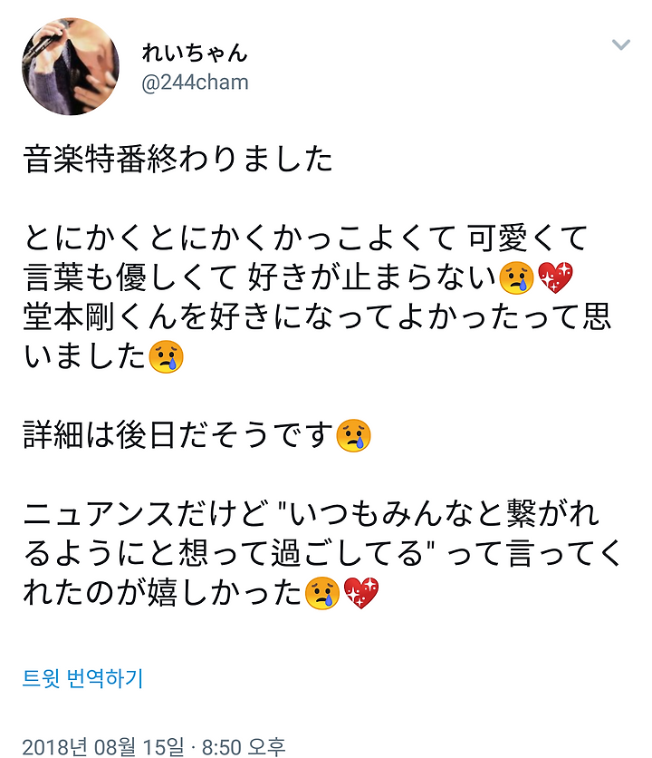 뉘앙스지만 "언제나 모두와 이어져있다고 생각하며 지내"라고 해 준 것이 기뻤어 😢💖