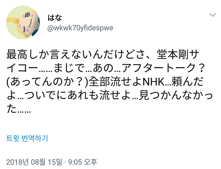 최고라고 밖에 말 못하지만 도모토 쯔요시 최고. 진심... 아노..훵크 토크? (맞으려나?) 전부 내보내줘 NHK 부탁한다구 그런 김에 저것도 내보내줘.. 발견 못했었네..