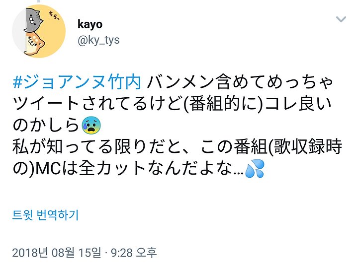 죠누아 타케우치 멤버 포함해서 엄청 트윗되고 있는데 (방송적으로) 이거 괜찮을 까나