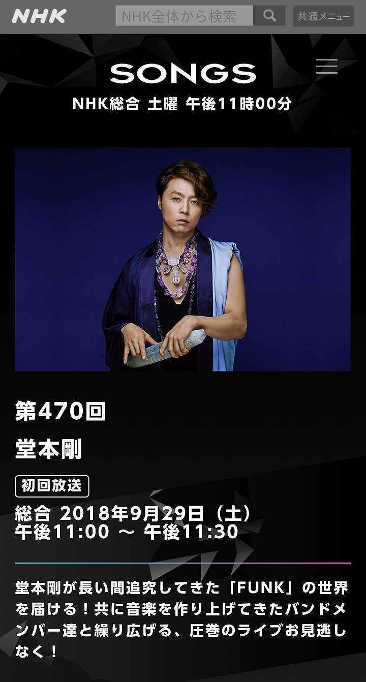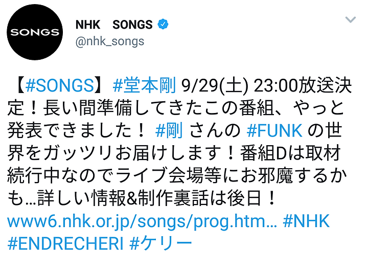 [#SONGS] #도모토 쯔요시 9/29(토)23:00방송 결정!ㅜ오랫동안 준비해 온 이 프로그램, 겨우 발표 할 수 있었습니다!#쯔요시 씨의#FUNK의 세계를 충분히 전달합니다!프로그램 D는 취재 진행 중이기 때문에 라이브 회장 등에 실례할지도... 자세한 정보&제작 뒷 이야기는 후일!