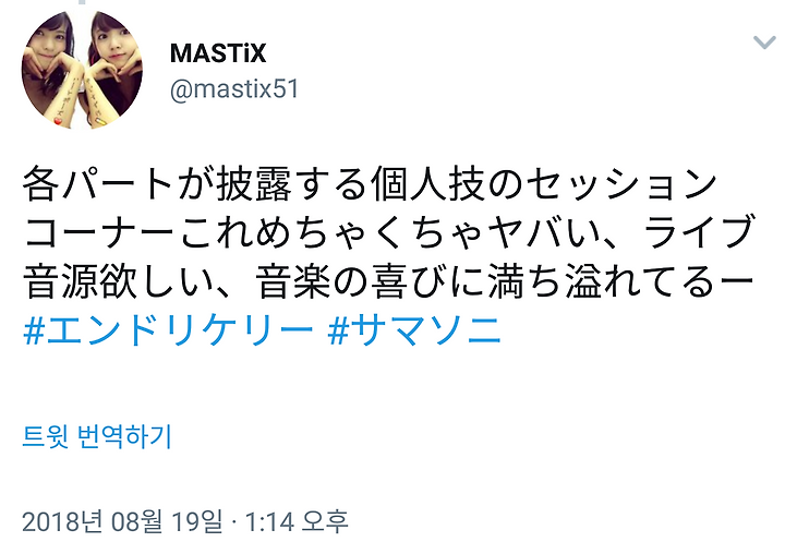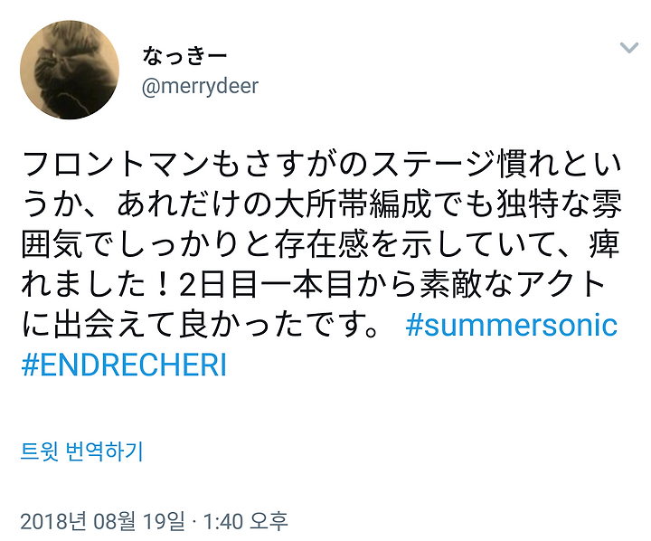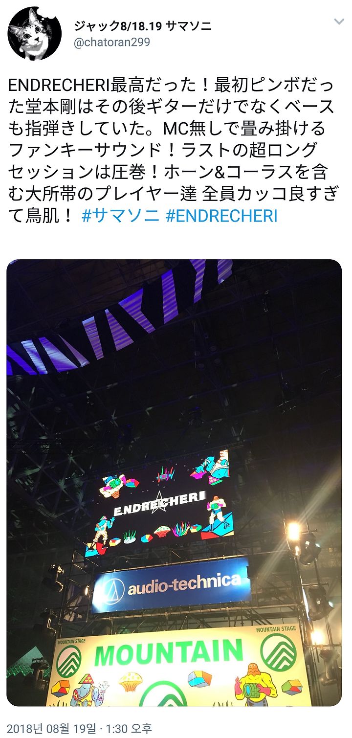 間奏いい!#サマソニ #summersonic #ENDRECHERI pic.twitter.com/zjzkQJbtbw