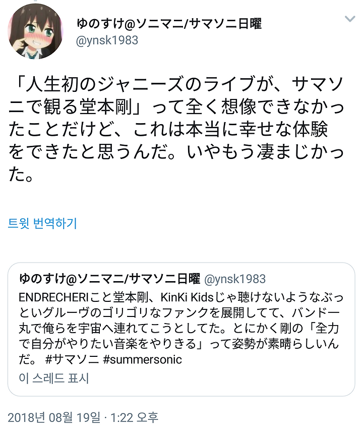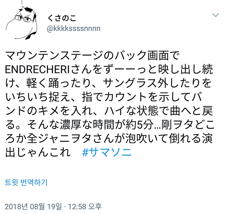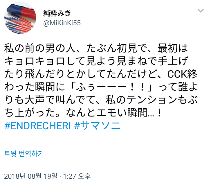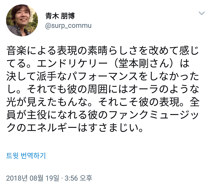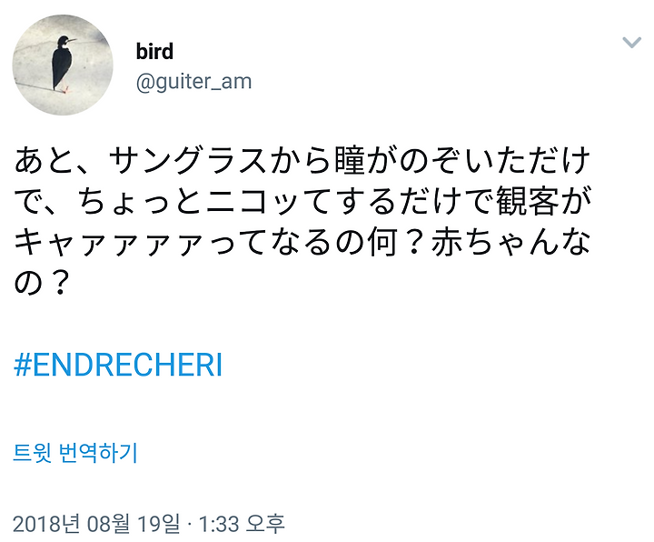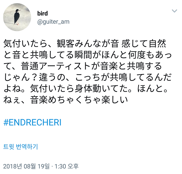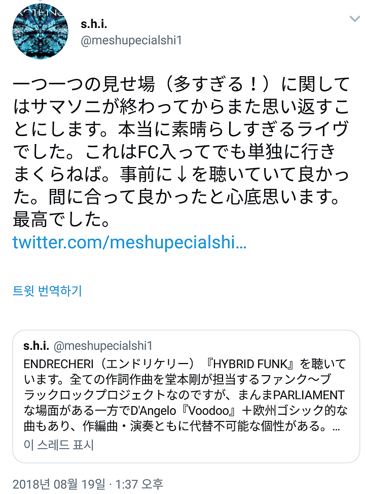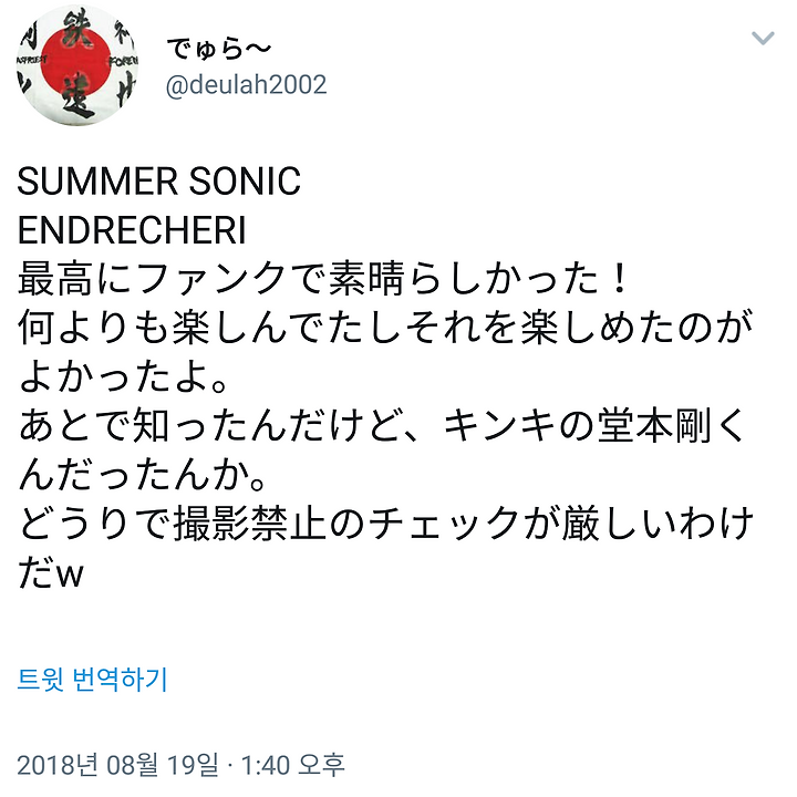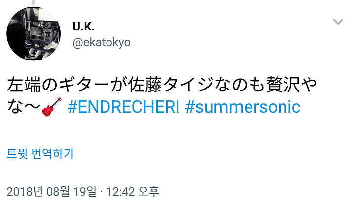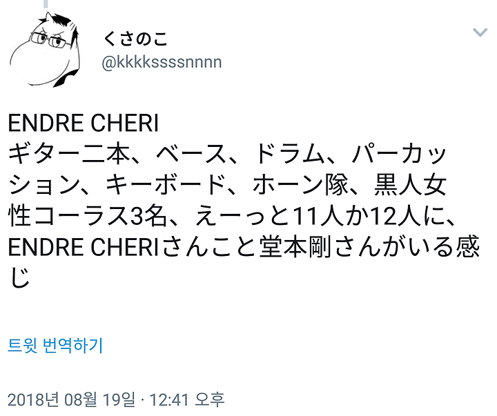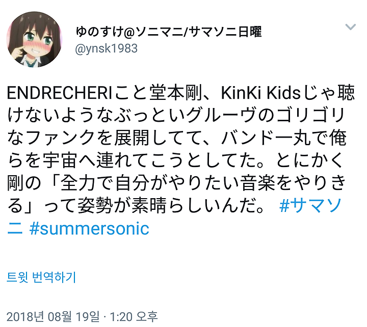 #ENDRECHERI, 처음 봤는데 발군에 멋있어서 항복. "Kinki Kids" "쟈니즈"라든가 일절 제외하고 한 뮤지션으로서, 한 음악 무대로, 유일무이하고 SS급ㅇ,러 멋진. 이대로 해외 아티스트와 함께 세계를 돌고 오면 좋겠다고 생각할 만큼. 충격. 존경.
