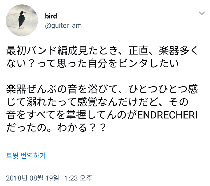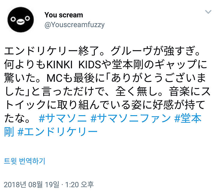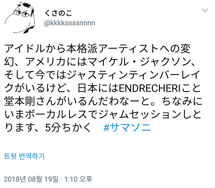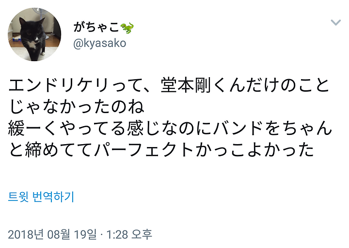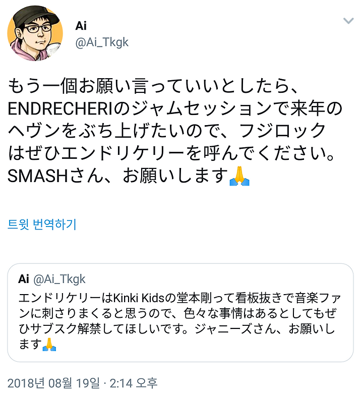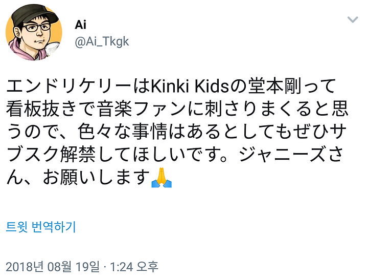 엔드리케리는 Kinki Kids의 도모토 쯔요시라는 간판 없이 음악 팬에게 마구 꽂힐 거라고 생각하기 때문에 여러 가지 사정은 있다해도 꼭 음악 배신 서비스 해주었으면 합니다. 쟈니상, 부탁합니다 🙏