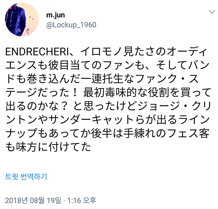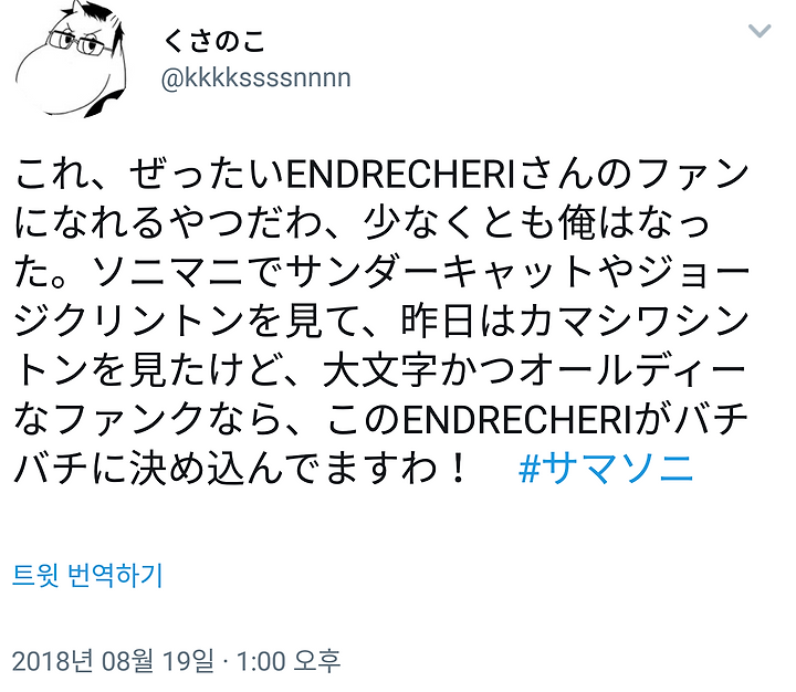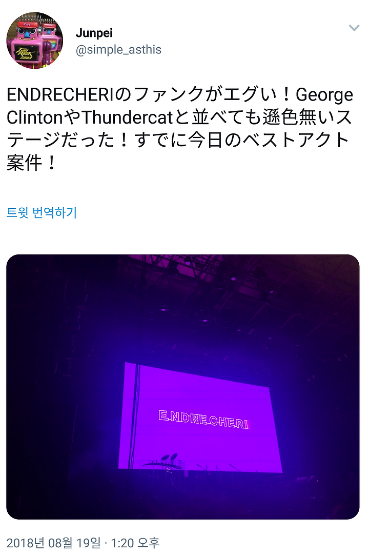 ENDRECHERI의 Funk가 대박! George Clinton과 Thundercat과 나란히 해도 손색 없는 무대였다! 이미 오늘의 베스트 액트 안건! https://t.co/mUbyewySKY