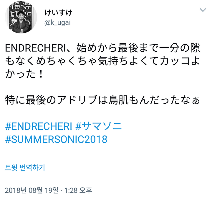 #ENDRECHERI #サマソニ #SUMMERSONIC2018ENDRECHERI, 처음부터 끝까지 한치의 빈틈도 없이 무척 기분 좋고 멋있었어!
