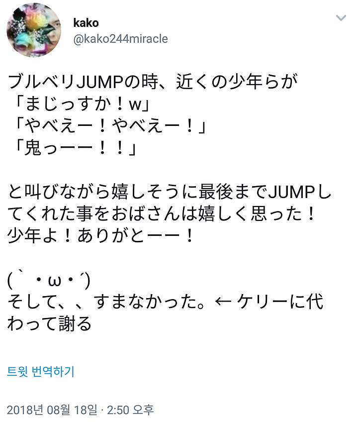 이라고 외치며 기쁜듯이 끝까지 JUMP해주었다는 것을 아주머니는 기쁘게 생각한!