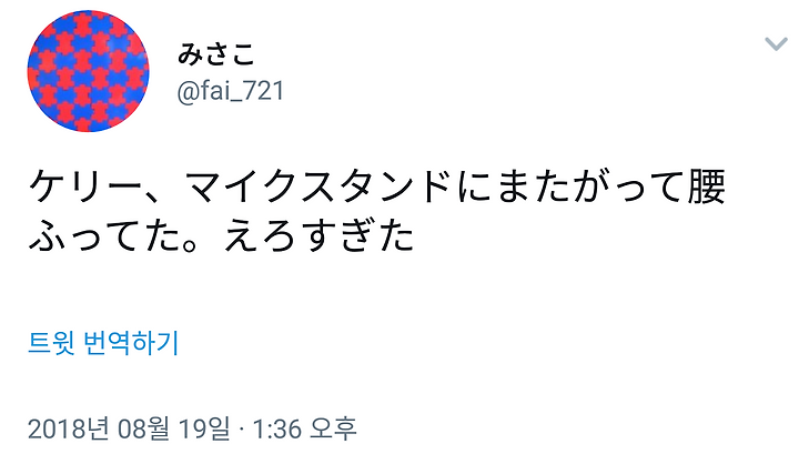 케리, 마이크 스탠드 가랑이 타고 넘어서 허리 흔들었어. 너무 야하다.