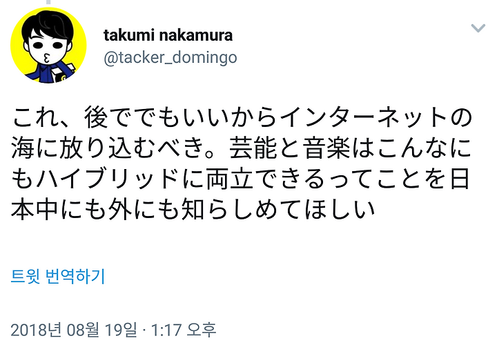 이거 나중에라도 좋으니까 인터넷의 바다에 던져야만 한다. 예능과 음악은 이렇게도 하이브리드로 양립할 수 있다는 것을 일본 전체에도 밖에도 알리고 싶다