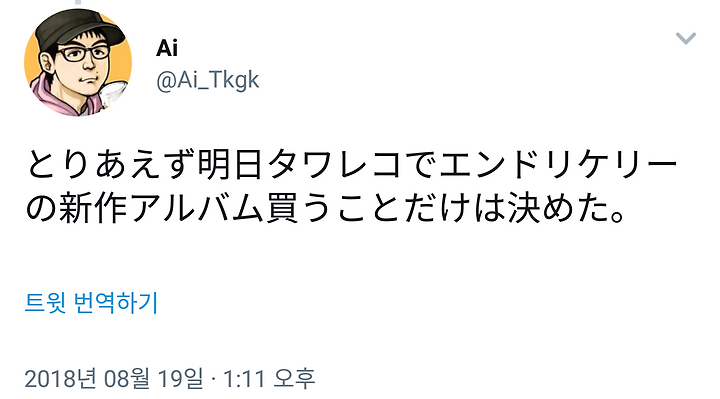 일단 내일 타워 레코드에서 엔드리케리의 신작 앨범을 사것만큼은 정했다.