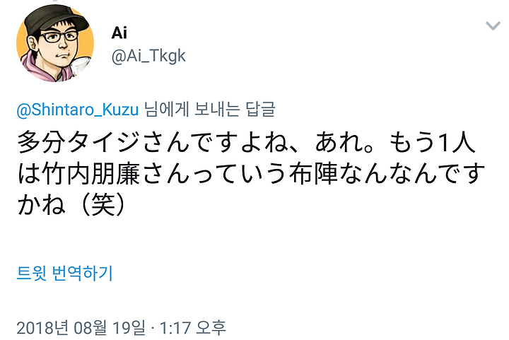 아마 타이지상이지요 저거. 또 한 명은 타케우치 토모야스상이라고 하는 포진이려나요 ㅎㅎ