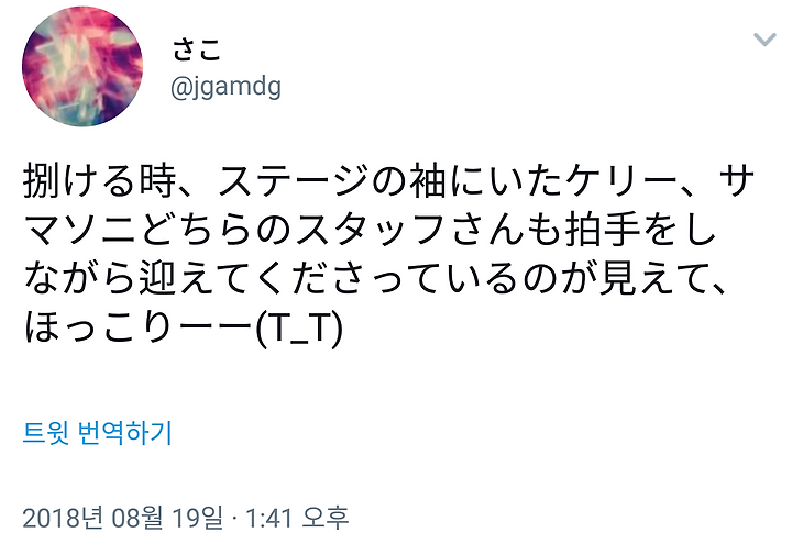 퇴장할 때 무대의 소매에 있던 케리. 섬머소닉 어느 스태프 여러분도 박수를 치며 맞아 주시는 것이 보여서 훈훈--(T_T)
