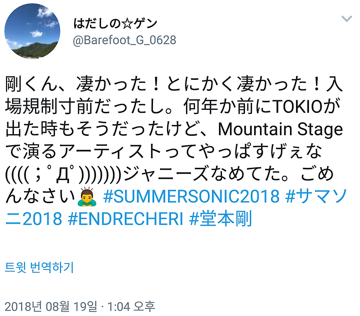 すごいステージ見せてもらいました。剛くんありがと。#サマソニ https://t.co/GcAmN2UTAz