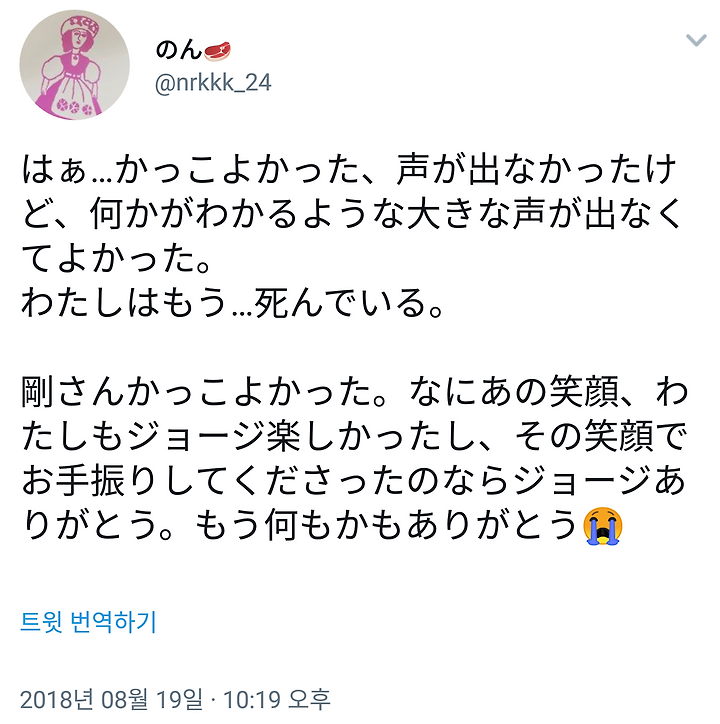 쯔요시상 멋있었어. 뭐야 저 미소, 나도 조지 즐거웠고, 그 웃는 얼굴로, 손 흔들어준거라면 조지 고마워. 정말 뭐든지간에 고마워 😭