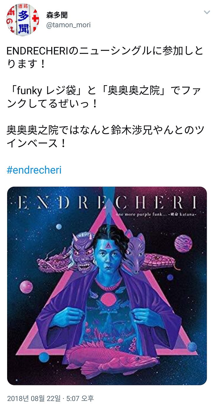 ENDRECHERI의 NEW싱글 『 one more purple funk...- 硬命 katana- 커플링『奥奥奥之院 』에서 Pokemon과 트윈 베이스를 연주합니다!!
