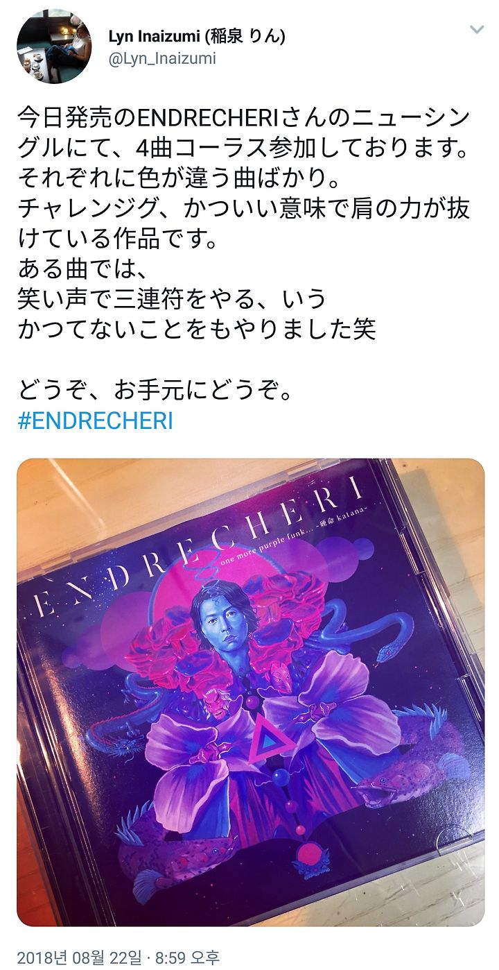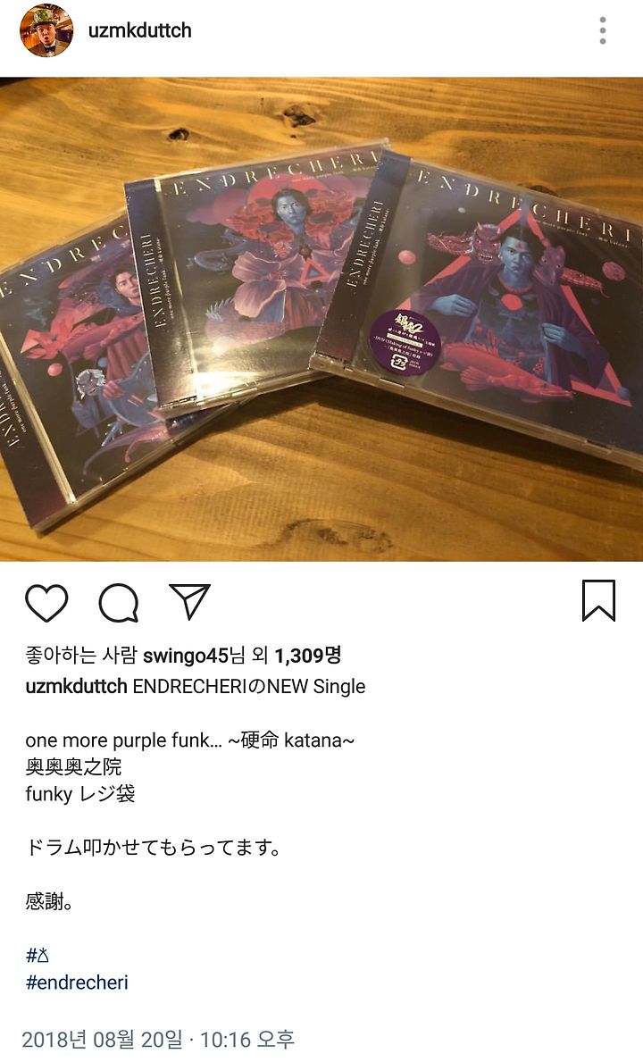 ENDRECHERIのNEWシングル『one more purple funk... -硬命 katana- 』カップリング『奥奥奥之院』でPokemonとツインベース弾いてます!!