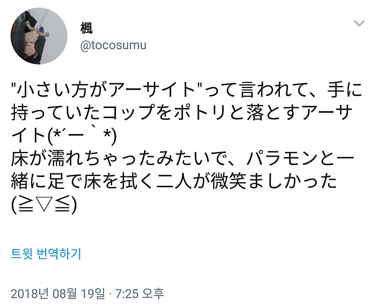 "小さい方がアーサイト"って言われて、手に持っていたコップをポトリと落とすアーサイト(*´ー`*)
