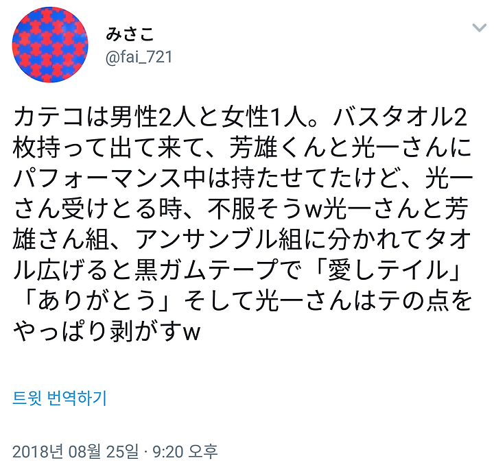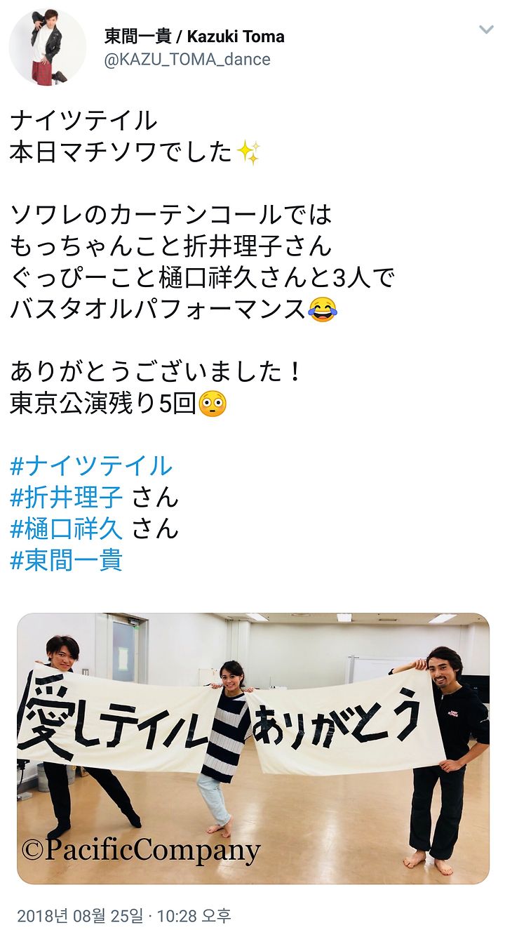 펼친 순간, 코이치상 수건 들여다보며 뭐 이건 노리고 있구나, 라고 하는 나쁜 얼굴 했었다 w 떼어 낸 뒤 앙상블의 여성에 굉장히 혼이 나는데, 만면의 미소에여서 장난 꾸러기 귀여운