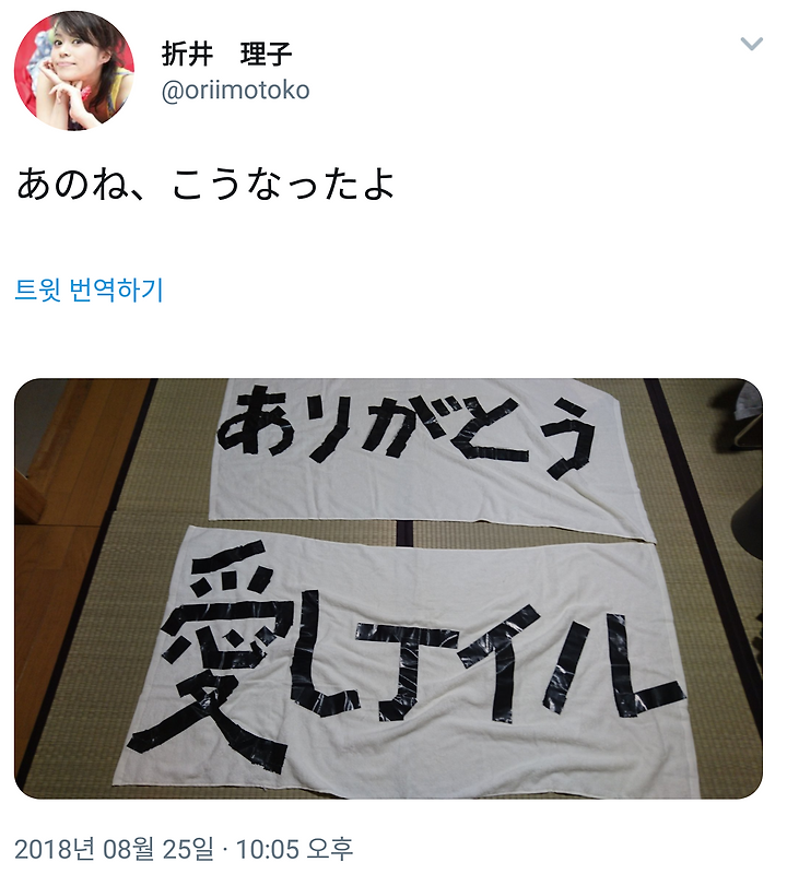펼치자 테이프로 "아이시테이루"글씨가.