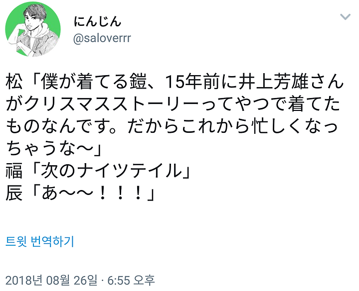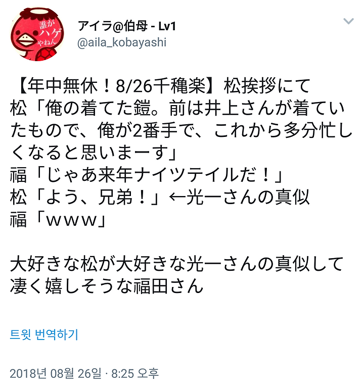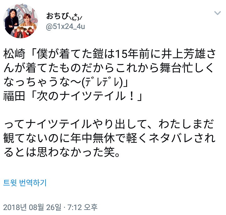[도모토 코이치] 8/26 포유 무대「年中無休」나이츠 테일 언급