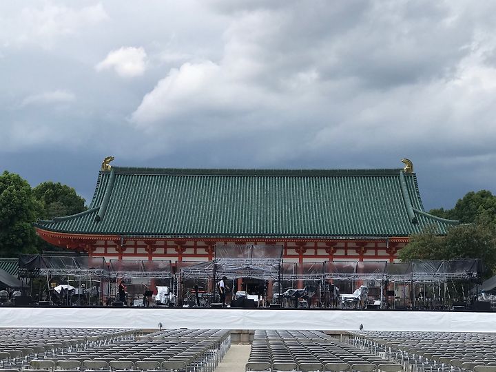 平安神宮の今。雨対策バッチリされてるね。全部に屋根があるし。空が不安定です。 https://t.co/N7svrq6V0O