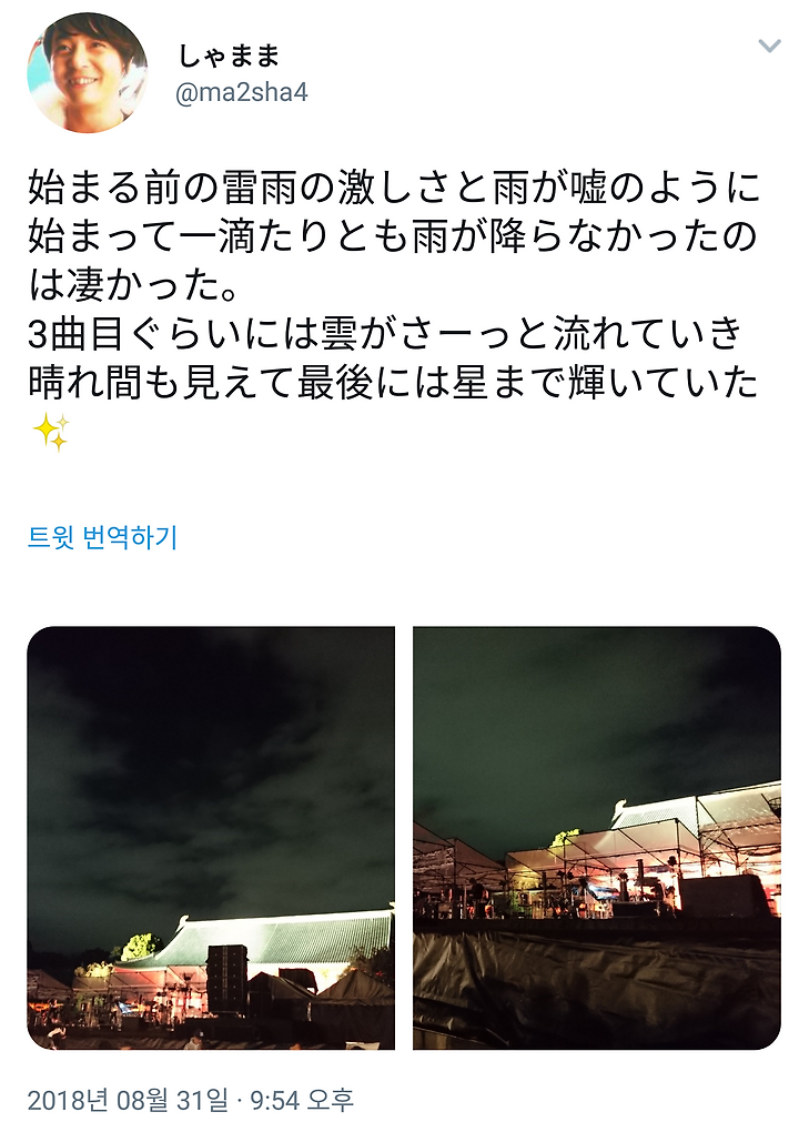 텐트를 걷지 않겠나며 직원에게 제안했지만 비 레이더가 있기 때문에..라며 거절당하고 만 쯔요시군. 결과 공연 중에는 비가 한 방울도 내리지 않았다.