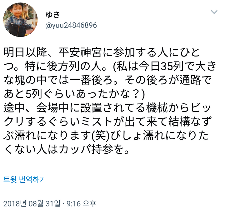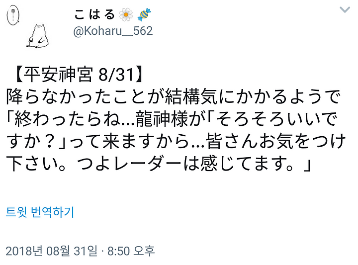 " 끝나면...용신님이 "이제 (비 내려도) 괜찮겠습니까?"라며 올 테니까요...여러분 조심하세요. 쯔요레이더는 느끼고 있습니다."