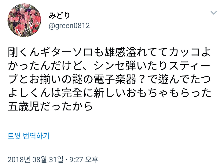 쯔요시군 기타 솔로도 수컷감 넘치고 멋있었는데, 신서사이저 치고 스티브와 함께 수수께끼의 전자 악기?로 노는 쯔요시군은 완전히 새로운 장난감 받은 5세아였으니까