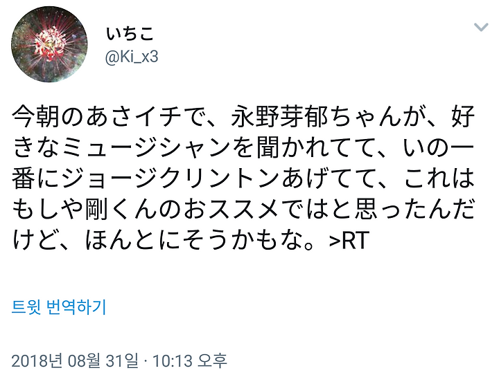 오늘 아침에 아사이치에서 나가노 메이 짱이 좋아하는 뮤지션을 질문받아, 맨 먼저 조지 클린턴을 들어서, 이는 혹시나 쯔요시군의 추천은 아닐지 라고 생각 했었는데, 정말 그럴지도?