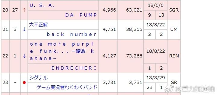 [도모토 쯔요시] 9/10부 오리콘 싱글 주간 랭킹 one more purple funk (22위)