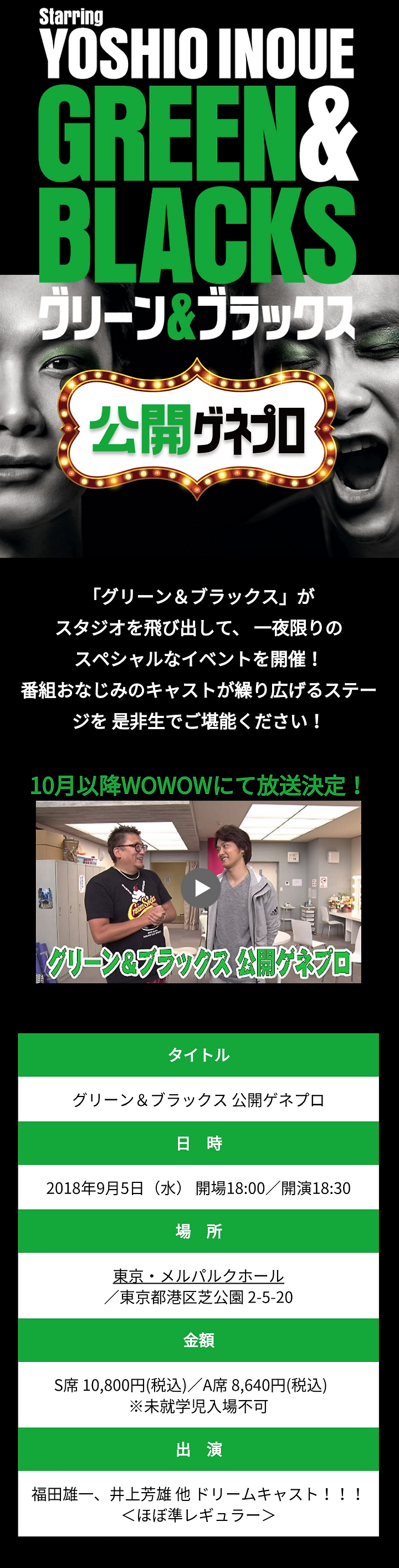 [도모토 코이치] 9/5 GREEN & BLACKS 공개 게네프로 (이노우에 요시오상 출연)