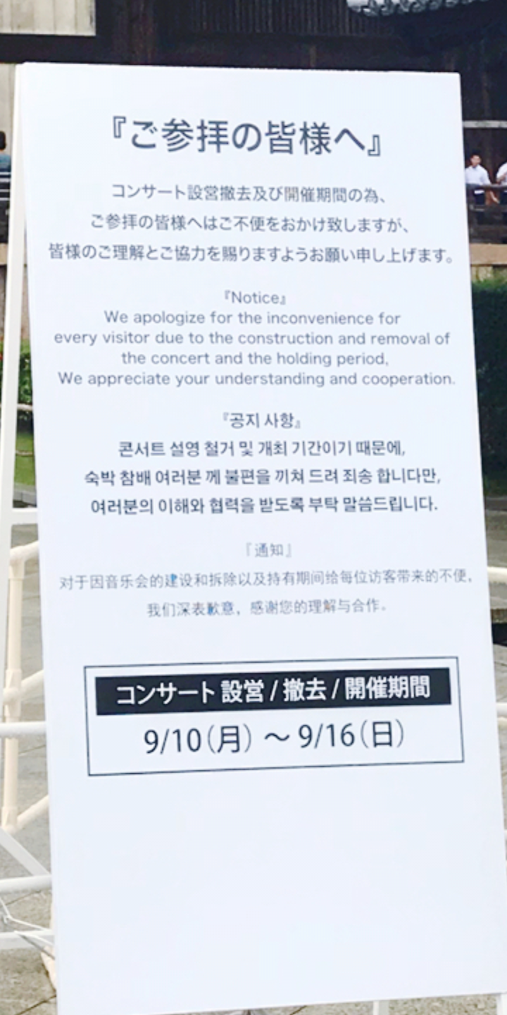 [도모토 쯔요시] 9/10~9/16 동대사 LIVE 설영 및 철거 기간