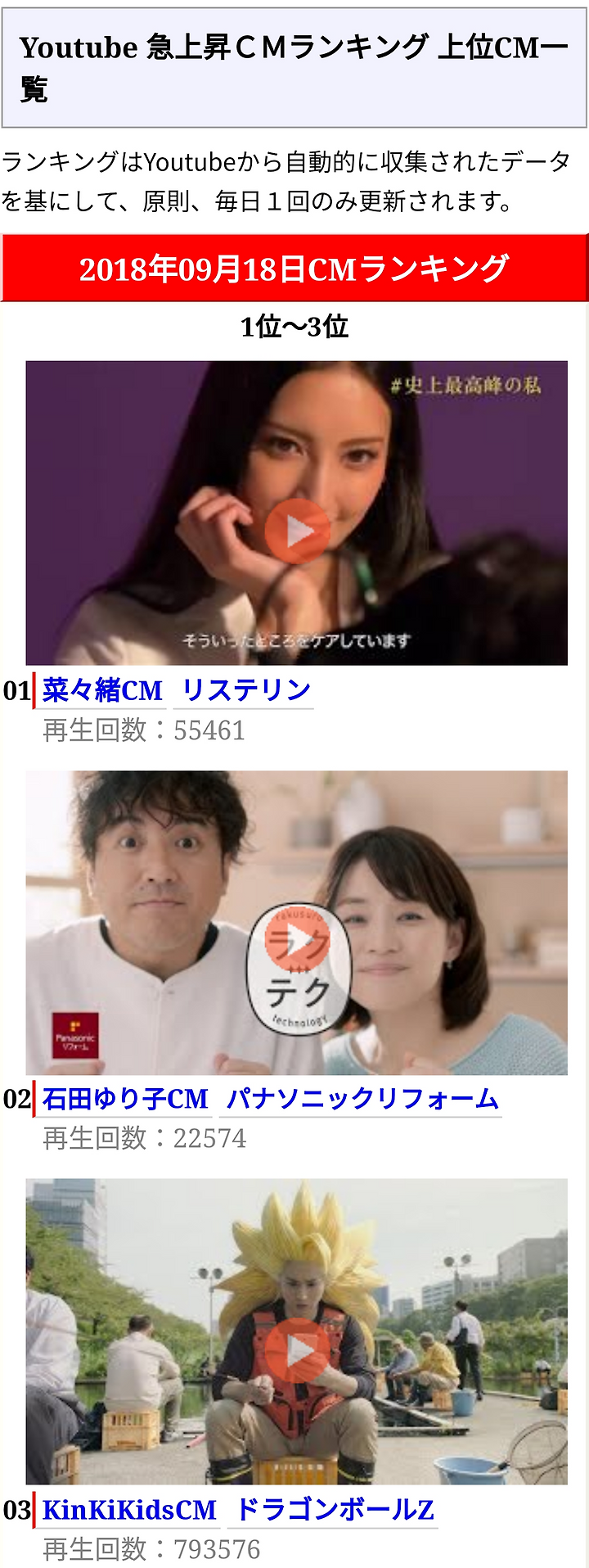 <데일리 인기 CM랭킹>