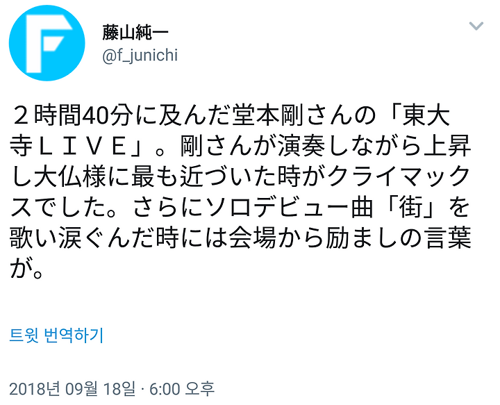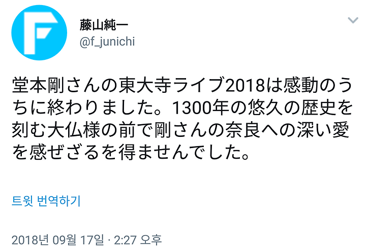 堂本剛さんの東大寺ライブ2018は感動のうちに終わりました。1300年の悠久の歴史を刻む大仏様の前で剛さんの奈良への深い愛を感ぜざるを得ませんでした。