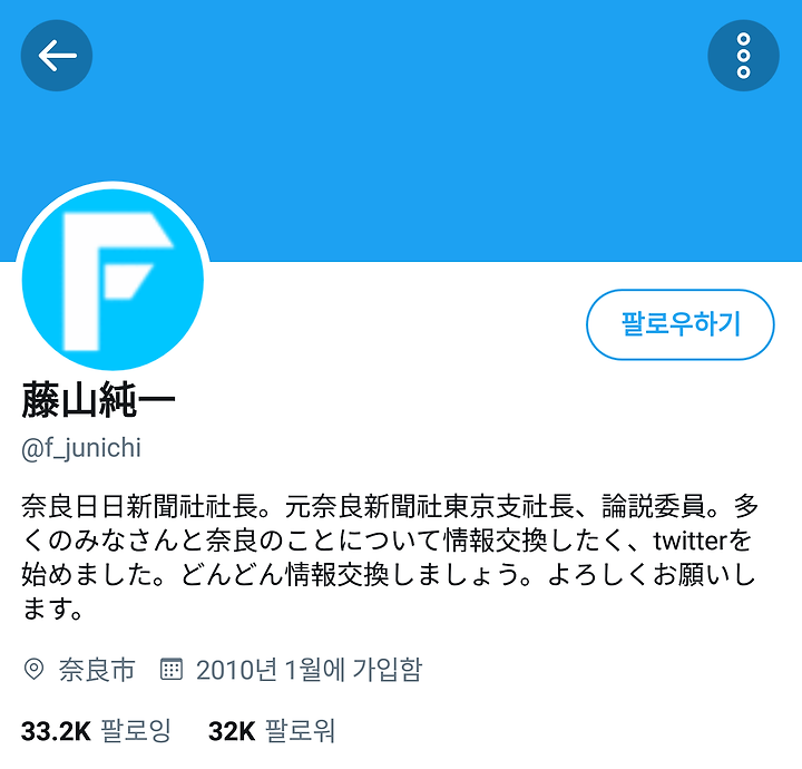 나라 일일 신문사 사장. 전 나라 신문사 도쿄 지사장, 논설 위원. 많은 여러분과 나라에 대해서 정보 교환하고자 twitter를 시작했습니다. 점점 정보 교환해갑시다. 잘 부탁 드립니다.