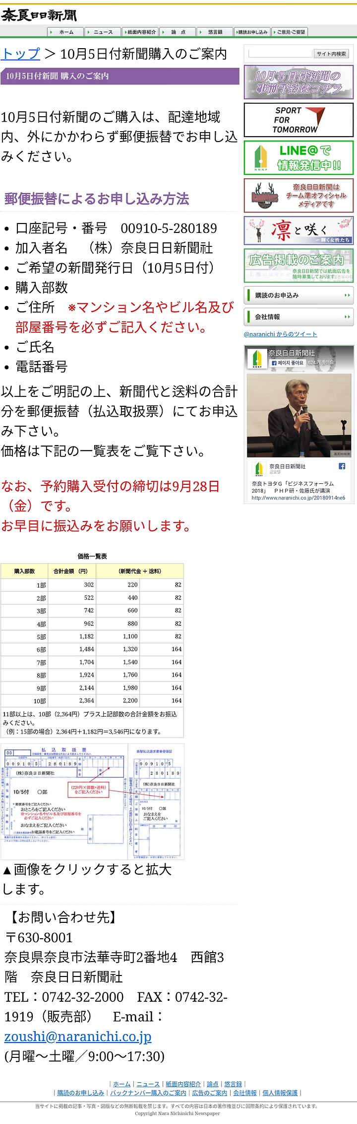 10月5日付で精一杯お伝えしたいと思います。遅くなりましたが、明日18日中には奈良日のホームページで申込サイトが立ち上がります。しばらくお待ちくださいね。