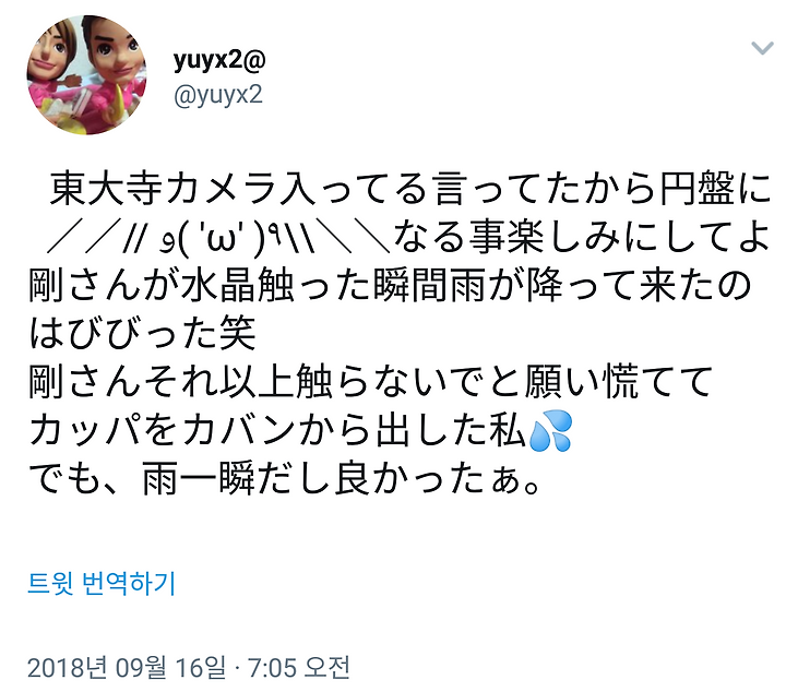 그러고보니 어제의 동대사상, 크리스탈 만지는 쯔요시상의 손놀림이 야해서 최고였습니다. 감사했습니다.